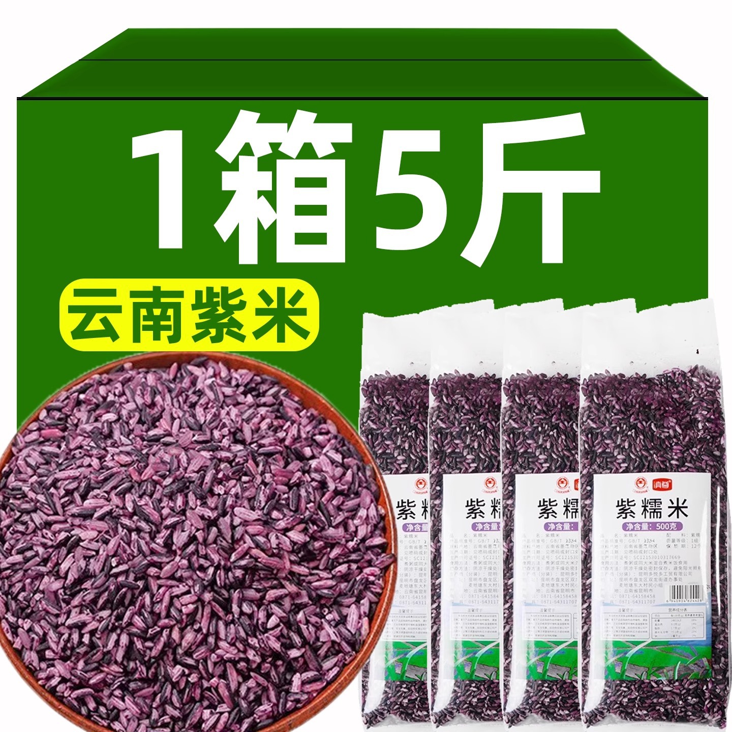 雲南墨江紫米特産粗粒五穀紫もち米寿司おにぎり黒米全箱2.5kg卸売