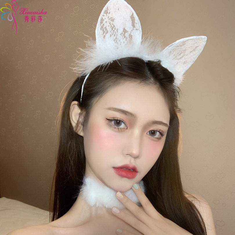 趣味の下着はバニーガールのウサギの耳の猫の耳のぬいぐるみの頭飾りのレースのカチューシャのアイマスクのセクシーな純欲の女性を飾ります。