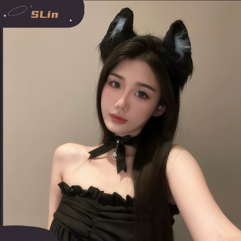 女性のセクシーな禁欲系のセクシーな猫の耳のカチューシャと首輪のチョーカーの首輪のセクシーな首輪の蝶結びの鈴