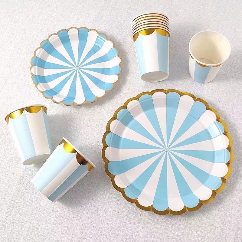 【現品】スイカ紋箔押し誕生日パーティーの雰囲気道具10個入り使い捨て食器紙コップティッシュ