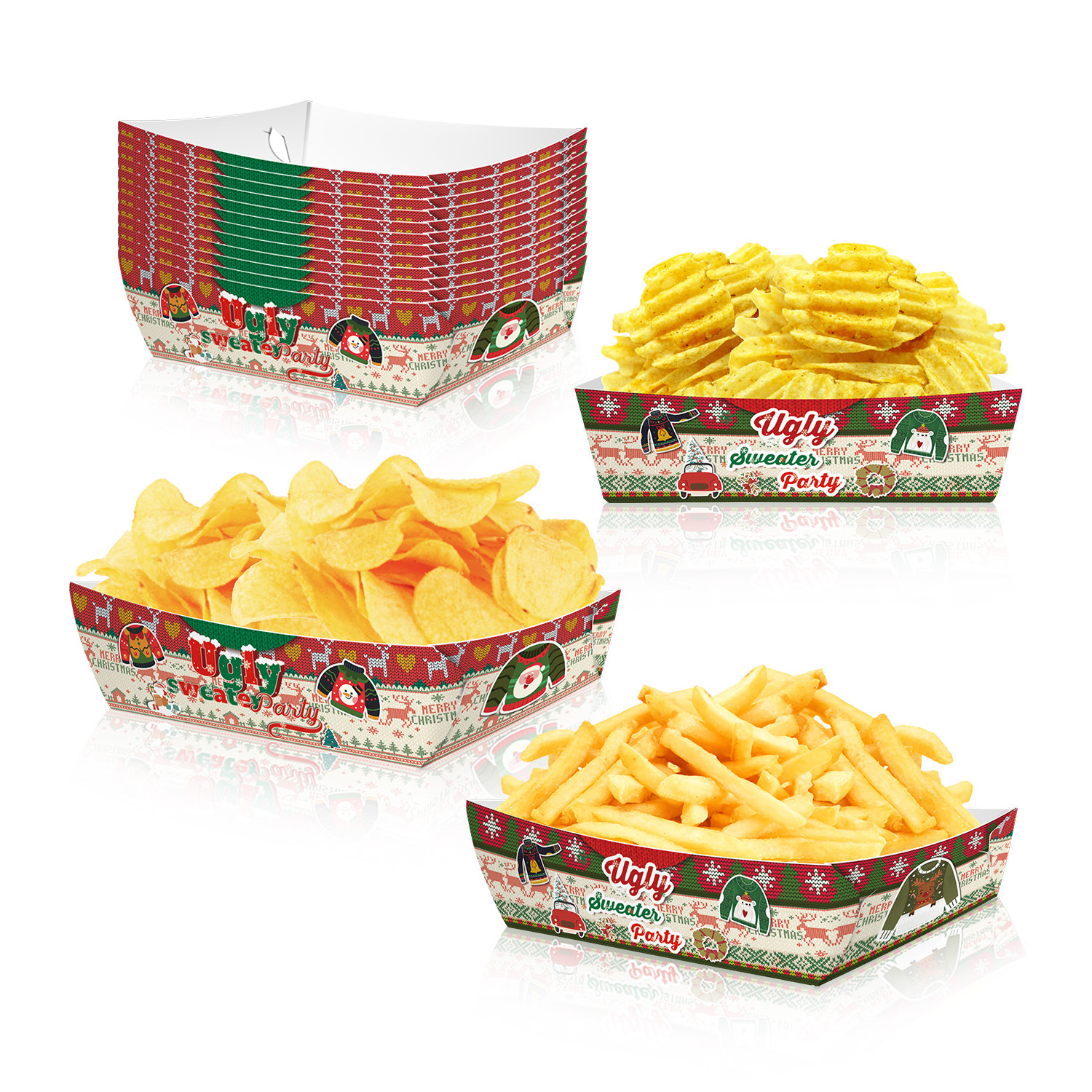 クリスマスパーティーポテトチップス箱使い捨てスナック箱スナックトレイ醜いセーターテーマ祝日パーティー装飾