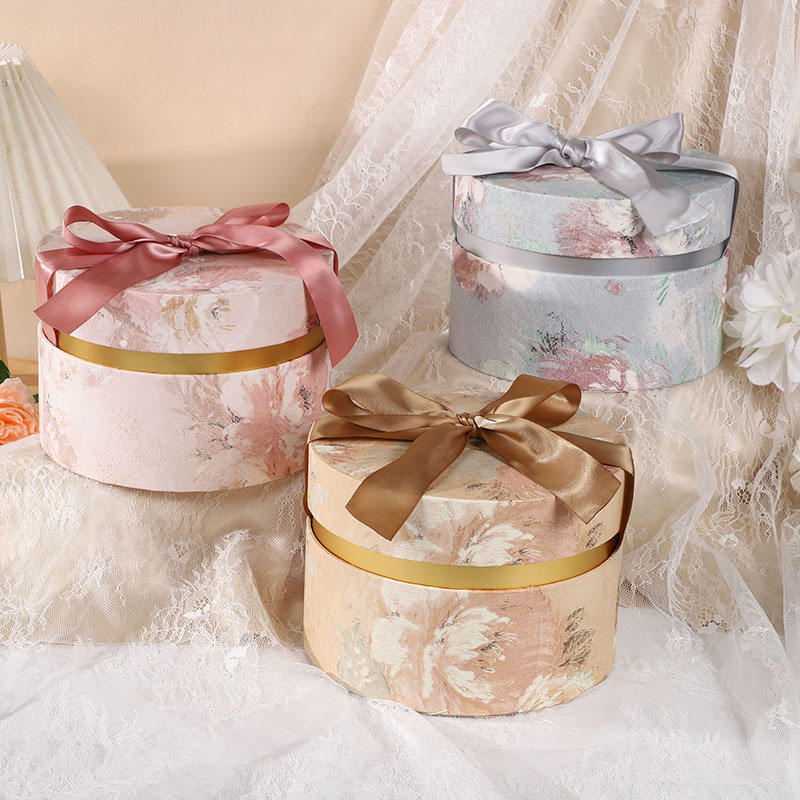 発泡紙の丸い桶の新婚の花嫁のお土産の円形の空の箱の小さいサイズの喜糖の箱の中国式の小さい香風の生花の贈り物箱