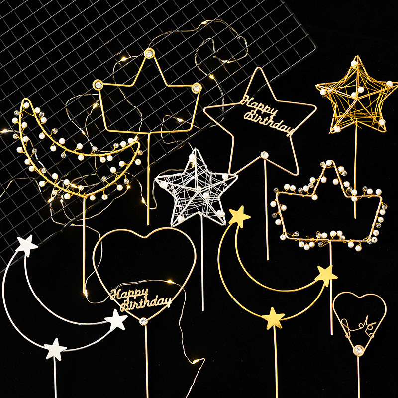 鉄芸月星シリーズ装飾ケーキ旗鉄芸金色銀色月ケーキパーティー装飾プラグイン