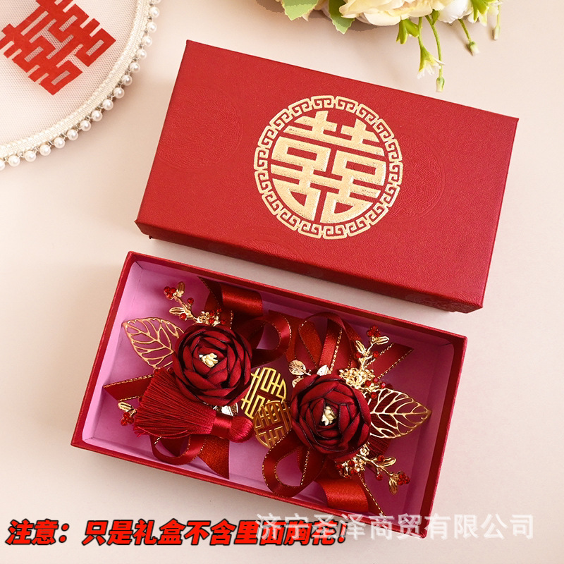 高級中国式結婚胸花花花新郎新婦結婚式ギフトボックス赤シンプルボックス空箱結婚用品