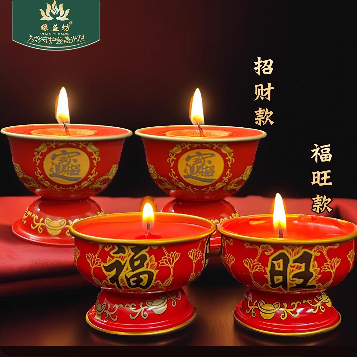 ろうそくの上にお寺の小さな燭台の家庭用赤いショートニングランプを使って旧正月の元宵祝いに使うキャンドル