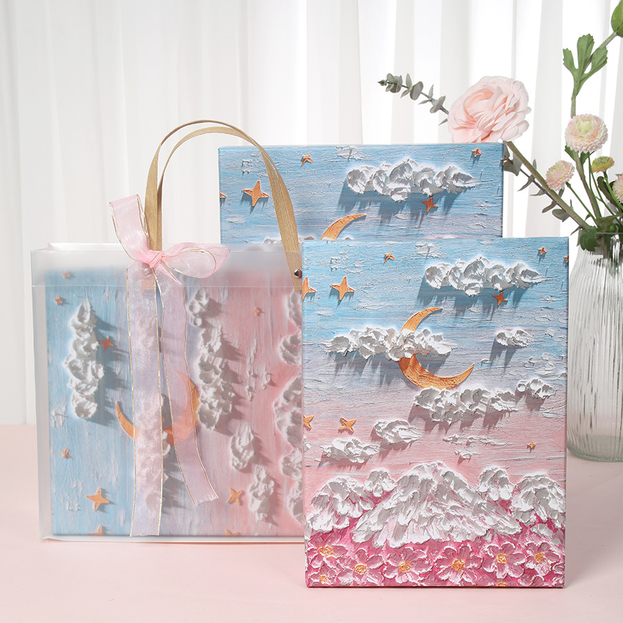 ピンクの油絵ギフトボックスお土産透明ハンドバッグ誕生日ギフトハイエンドウェディングギフトボックス在庫卸売
