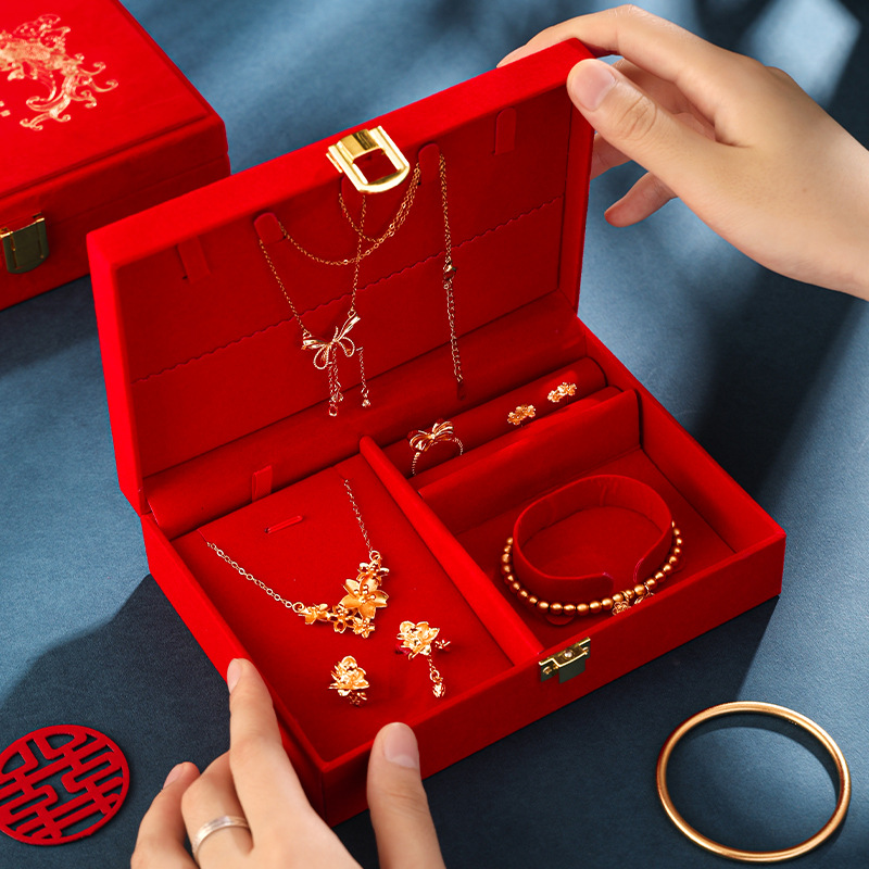 三金ジュエリーボックス、宝石、金、金属製の贈り物箱、指輪、ペンダント、婚約祝い、彩礼包装、収納、高級ギフトボックス