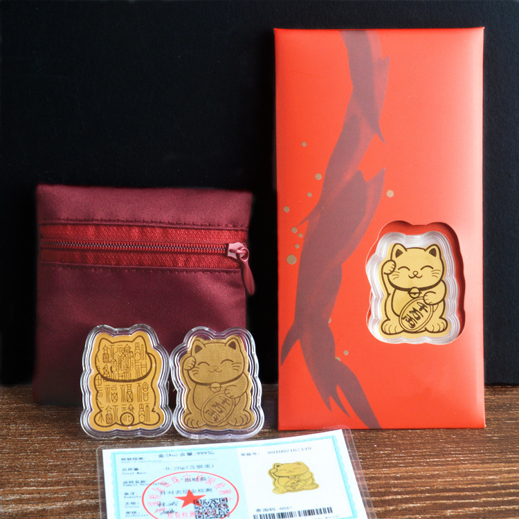 金箔招き猫の携帯電話は殻を貼って新年の赤い包みの周家の同じタイプの招き猫の金の携帯電話は活動の贈り物を貼ります。