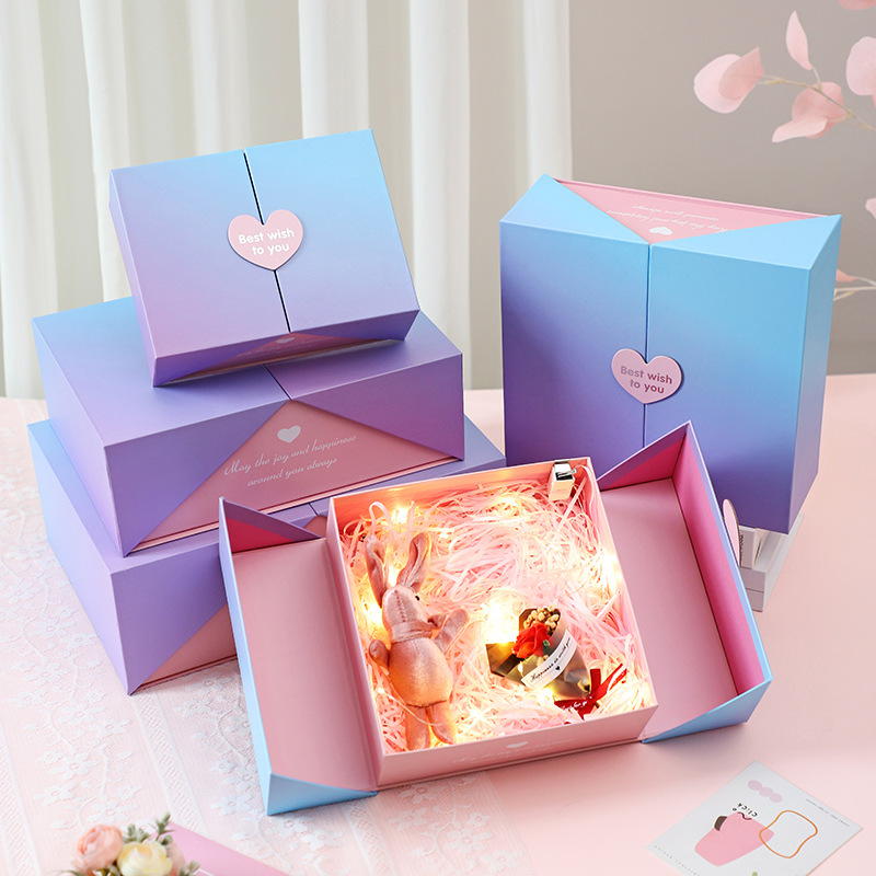 新品バレンタインギフトボックスクリエイティブお土産ボックスグラデーションダブル開ビジネスギフトボックス高級感