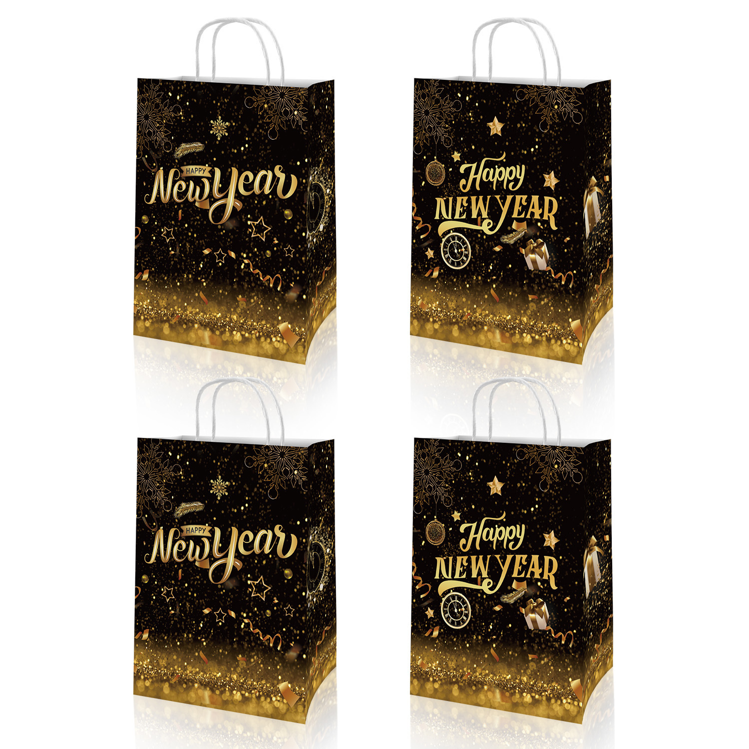 年越し新年パーティー手提げ紙2024黒金新年パーティーギフトバッグクラフト紙袋包装袋