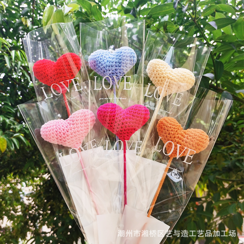 完成品は花束の母の日七夕の毛糸の花を編んで純色の愛の毛糸の花束を編みます。
