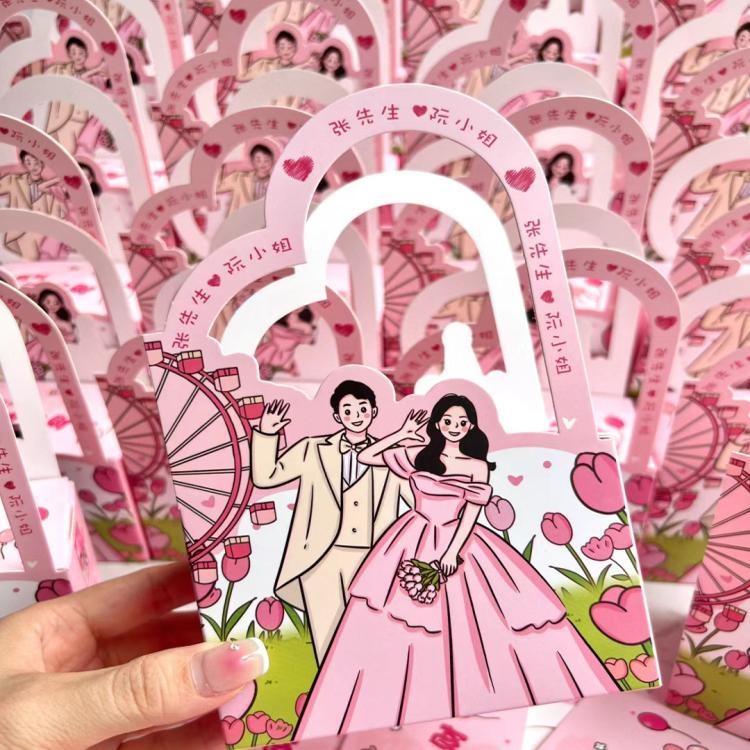 かわいい手描き結婚喜糖箱ネット赤手描きイラスト受証婚約高級感手提げ箱空箱テーブル糖箱