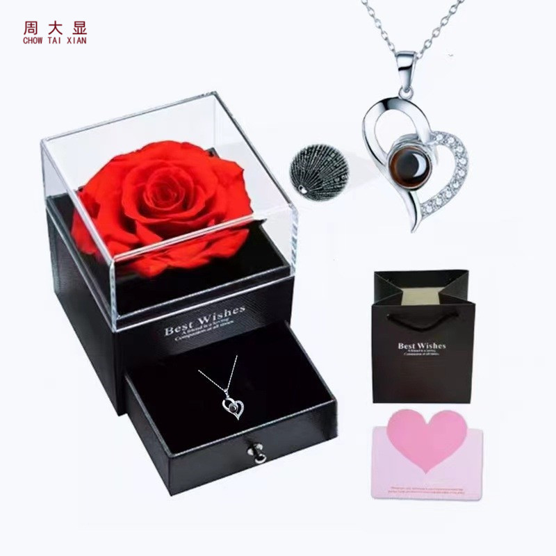 国境を越えた宝飾品の爆発的なアクセサリーの永遠の命の花礼箱アマゾンの投影ネックレス100言語母の日プレゼント