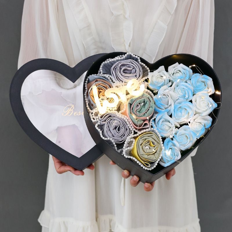 七夕のバレンタインデーの創意手作りのdiy材料は愛のバラの花束のギフトボックスを包んで彼氏の夫にプレゼントします。