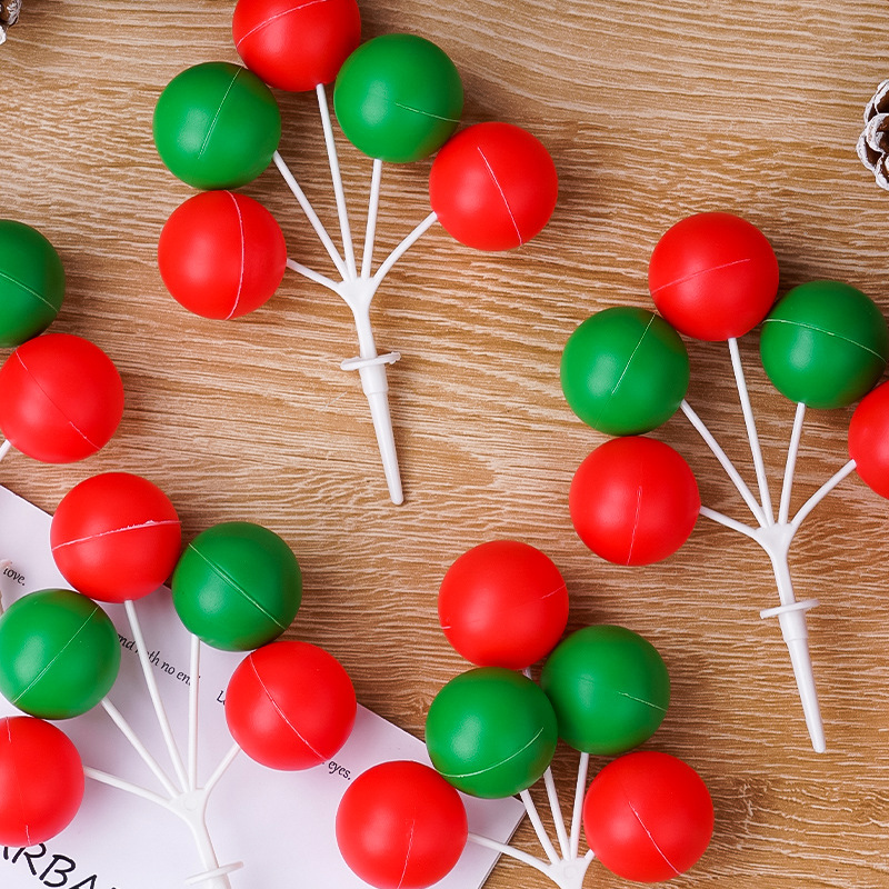 Ins風クリスマスケーキ装飾赤緑色プラスチック風船串レトロ大ボール誕生日平安夜プラグイン