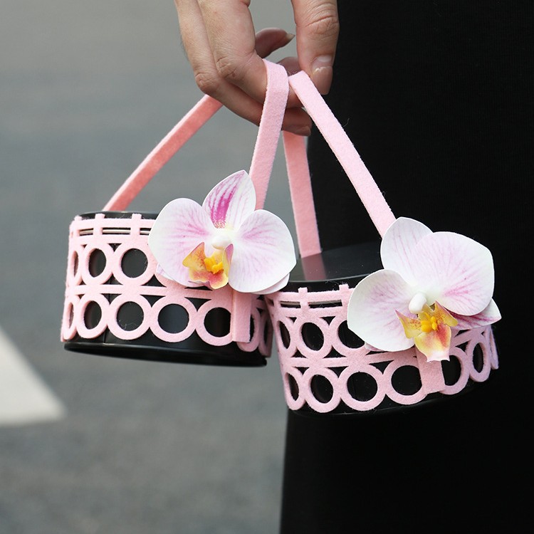シンプルなダブルハンドルの花のバスケットの箱の花の花束は鉢植えの贈り物の箱の花の芸のバラの花の手提げの包装箱を持ちます。