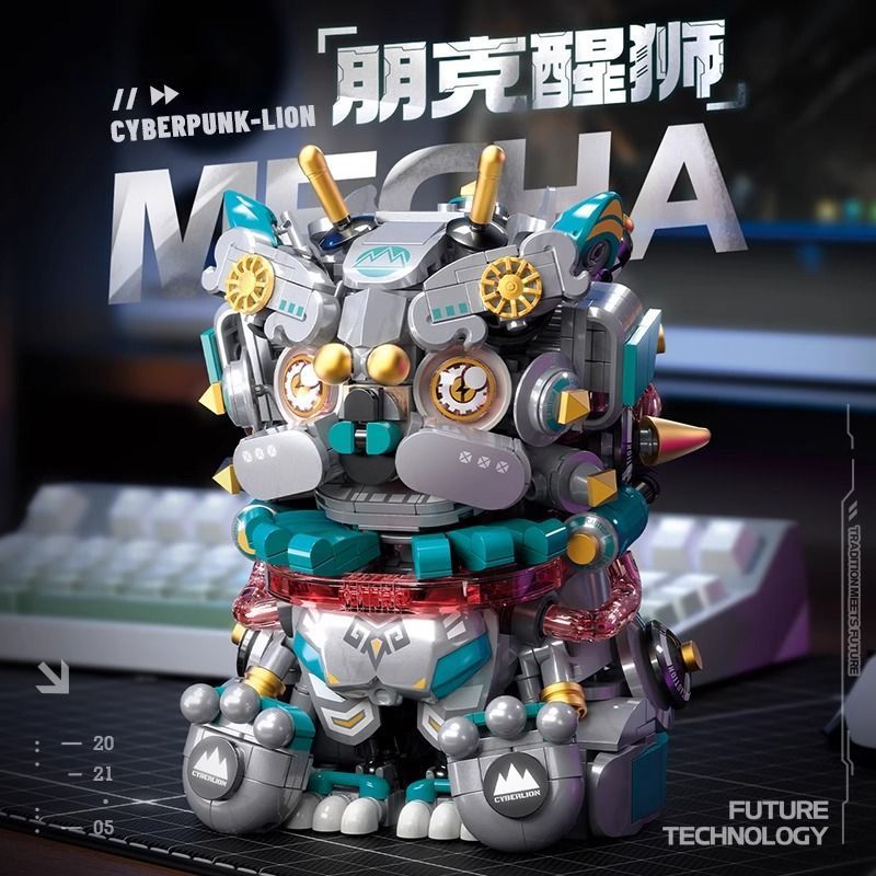 フェミリーリトル粒子組み立てビルディングブロックサイバーパンクライオン覚醒トレンディおもちゃオフィス手作りコンピュータデスク装飾品