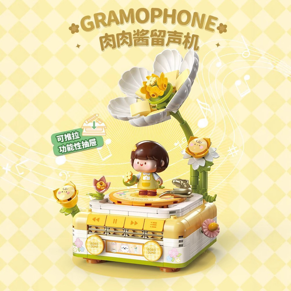 フェミミートソースフラワー蓄音機オルゴールビルディングブロックおもちゃの装飾品女の子子供の日のギフト教育ビルディング