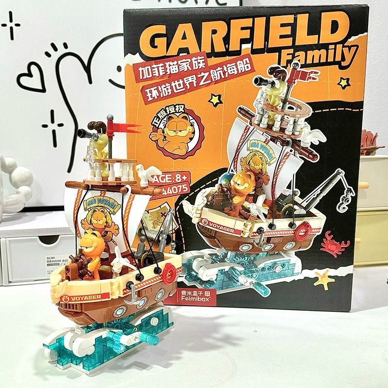 フェミビルディングブロックガーフィールドファミリー本物の共同ブランド食品食事カート組み立てビルディングブロック子供の知育玩具ギフト