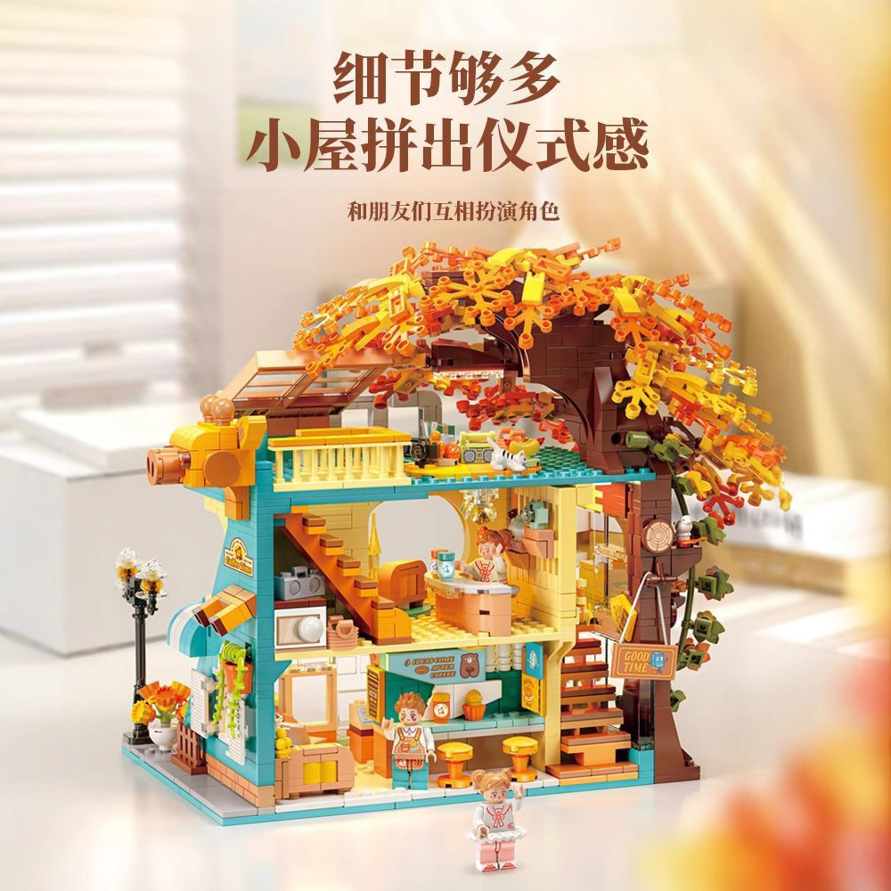 フェミリ小粒子子供用組み立てパズルビルディングブロック秋のコーヒーショップ男の子と女の子の誕生日プレゼントのおもちゃ