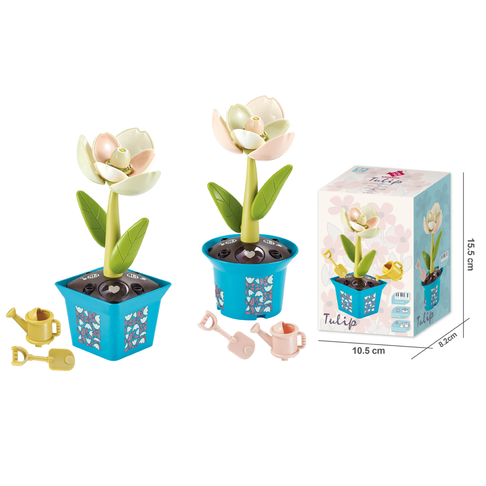 国境を越えた新しい電子ビルディングブロック、花、チューリップ、植物、鉢植えの装飾品、大粒子ビルディングブロック、組み立て式知育玩具