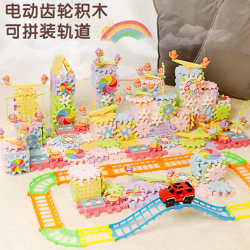 百変電動積み木回転歯車子供玩具益智大粒盛り合わせセット男の子パズルクロスボーダー