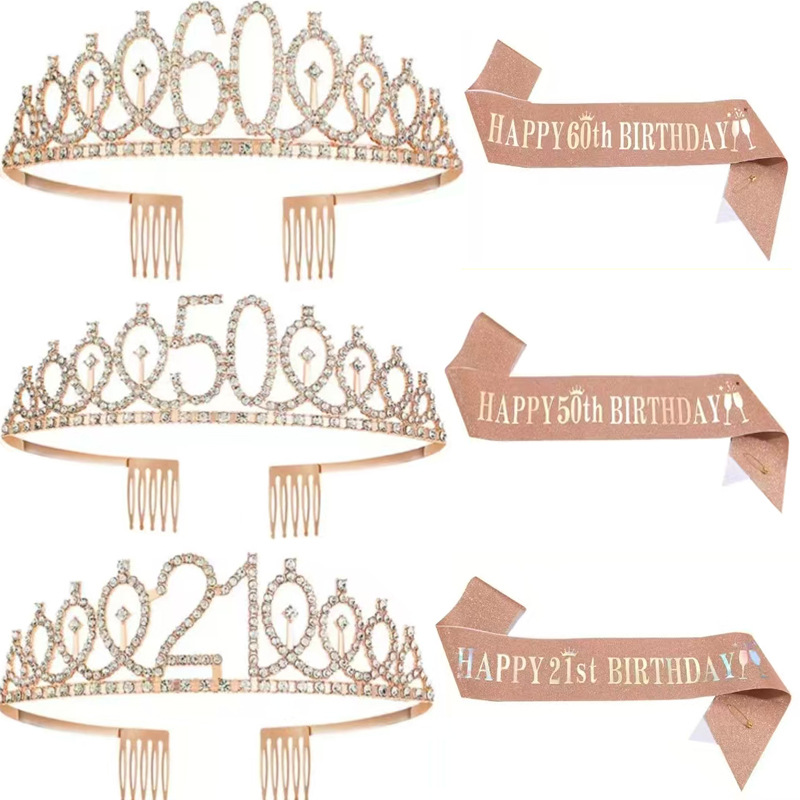 誕生日ヘッドバンド新しいデジタルセットクラウンストラップヨーロッパとアメリカの誕生日パーティーヘッドバンドヘッドバンド合金クラウンリボン