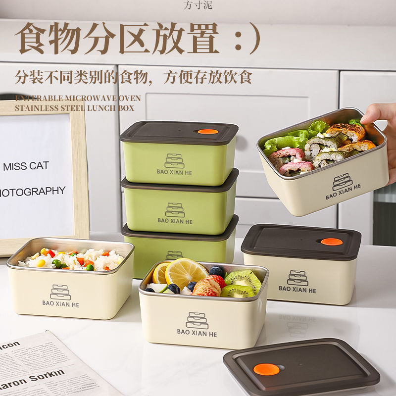 本ステンレス鮮度保持ボックス蓋付き食品級冷蔵庫収納ボックス電子レンジ加熱対外貿易工場卸売り