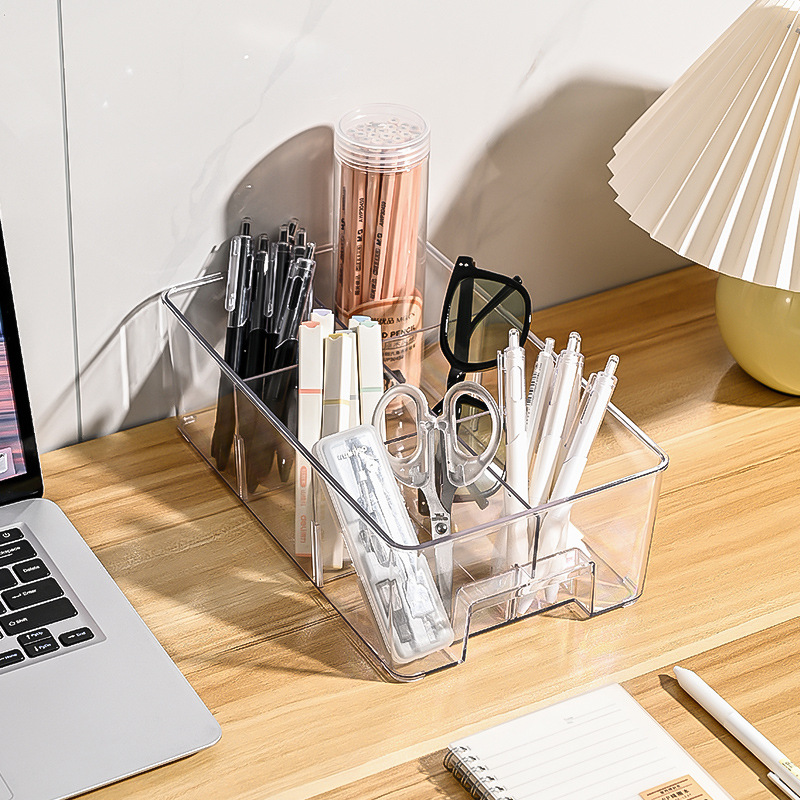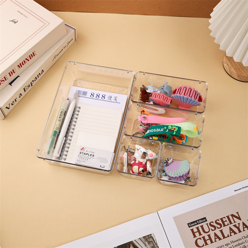 デスクトップ引き出し収納ボックス家庭用文房具雑貨化粧品分注整理ボックス透明厚手収納仕切りボックス