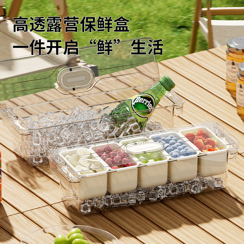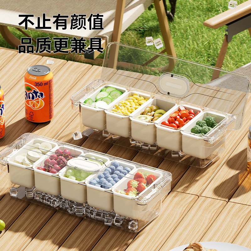 アイスサラダ収納ボックス屋外ピクニックパーティーコンパートメントボックス冷蔵庫プラスチッククリッパーフォーク付き