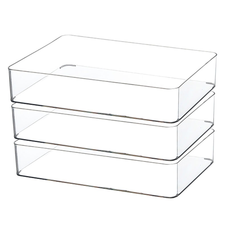 シンプルなデスクトップ文房具収納ボックスPET透明雑物三格収納ボックス浴室化粧品収納ボックス