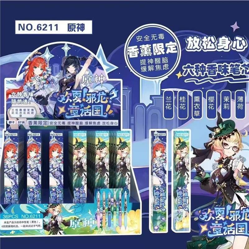 新しい原神ブラインドボックスペンクリエイティブ高価値学生ゲルペン漫画プレスブラック 0.5 インチ