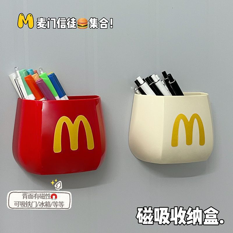 Maimen ペンホルダー磁気吸収ボックス収納家庭用冷蔵庫かわいいフライドポテトシールクリップペンホルダー多機能収納ラック