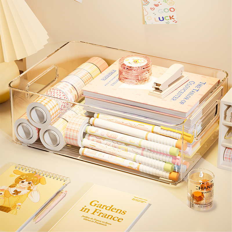 デスクトップ収納ボックスデスクトップ書籍文具小物スナック収納バスケットアクリル透明長方形収納ボックス
