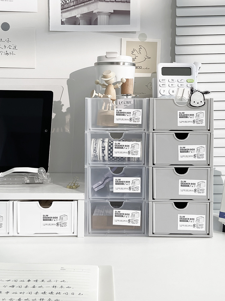 デスクトップ収納ボックス引き出し化粧品雑貨文具付箋ハンドブック狭いロング整理ボックス収納ボックスアクリル
