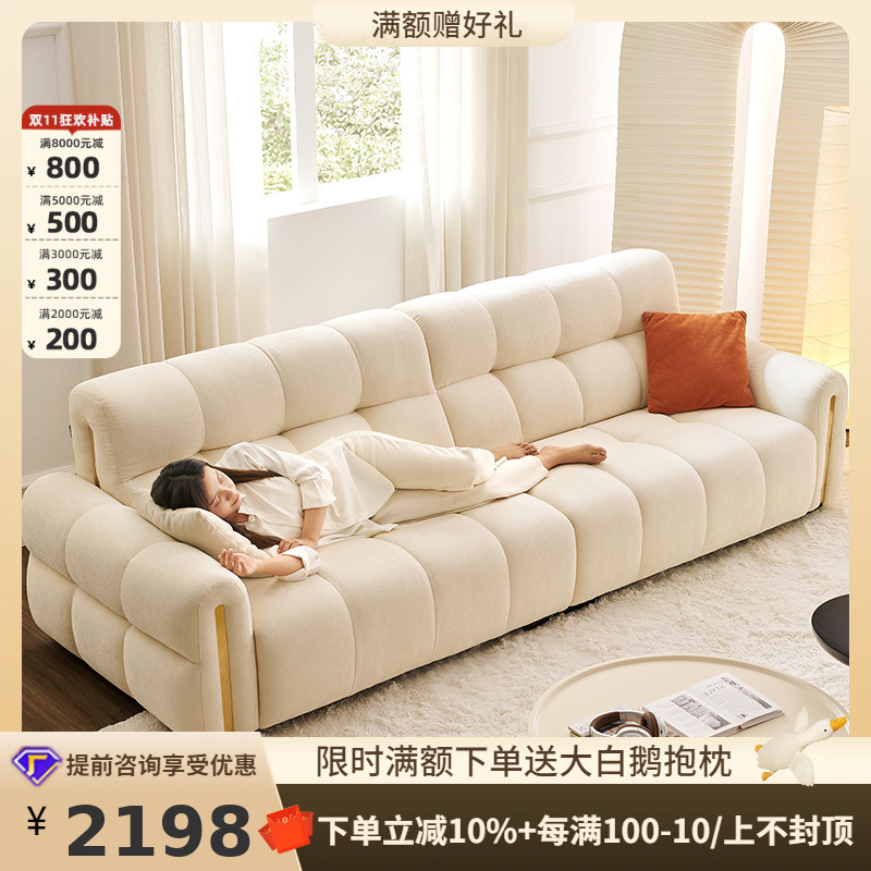 ミニマリストクリームスタイル豆腐ソファリビングルームシンプルモダンストレートソファインターネットセレブテクノロジーファブリックソファ工場