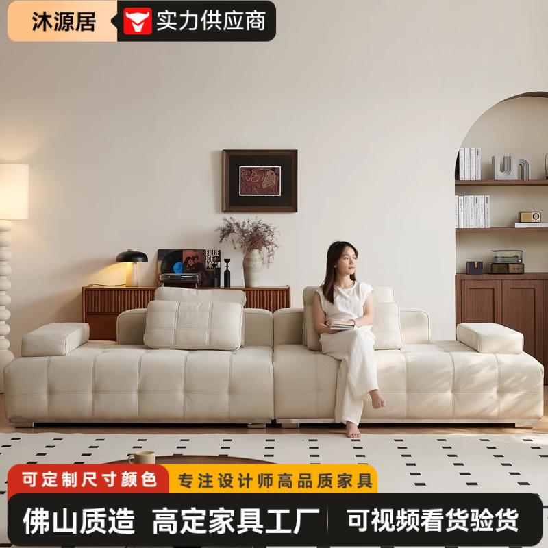 2025 新しい小さなアパートミニマリストクリームスタイル豆腐ブロックソファリビングルームシンプルモダンなストレートソファインターネットセレブモデル