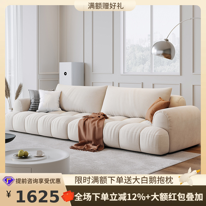 クラウドソファモダンシンプルリビングルームホーム小さなアパートダブルカジュアルライト高級インターネットセレブクリームスタイルファブリックソファ