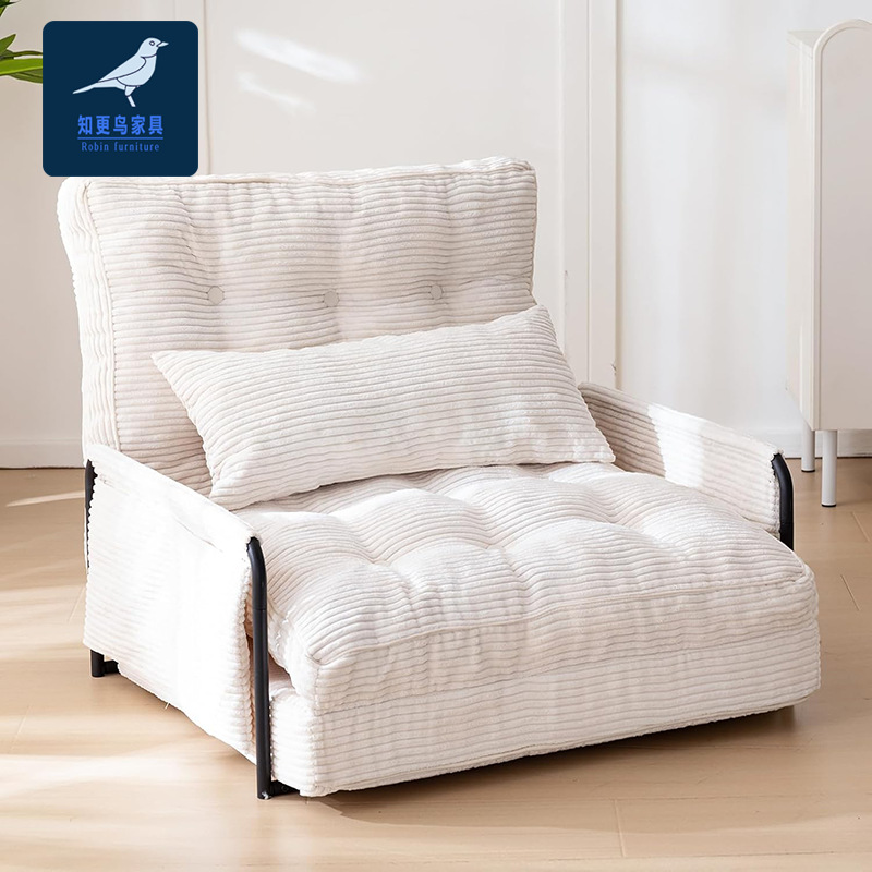 クリームシングルソファー小戸型客間湯葉麻芋ソファベッド折り畳み両用モジュール怠け者折り畳み可能
