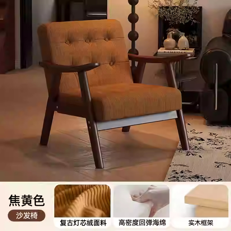 レトロソファ小さなアパート新しいリビングルームシングルソファ休憩エリア受付ダブルまたはトリプル無垢材ファブリックソファ