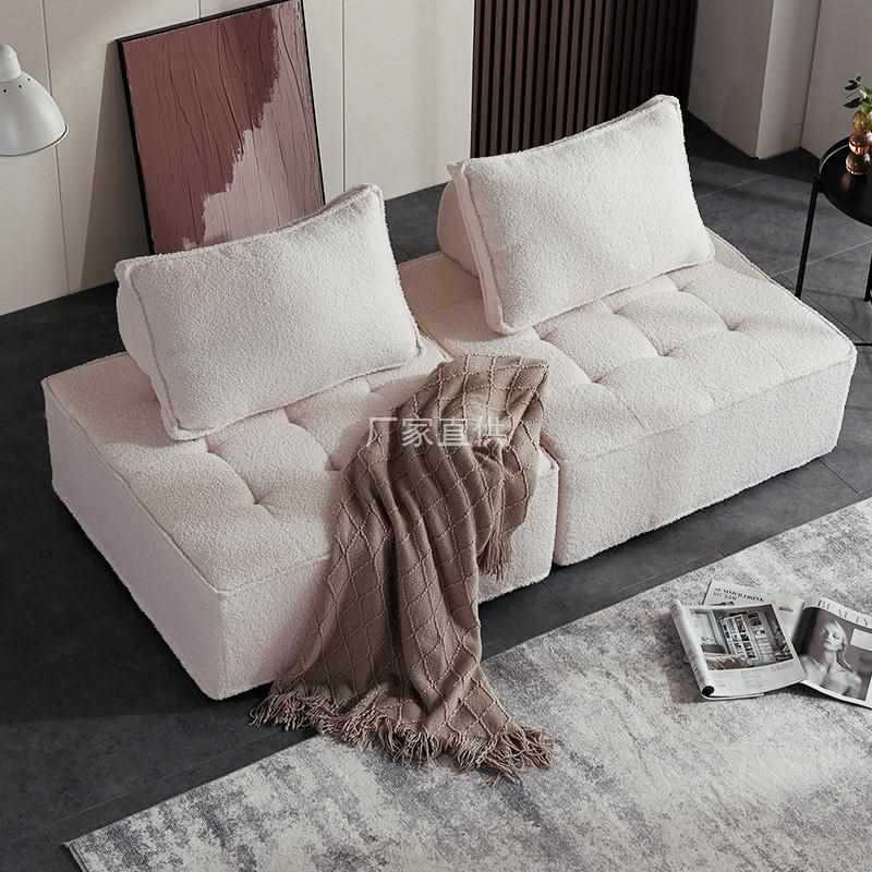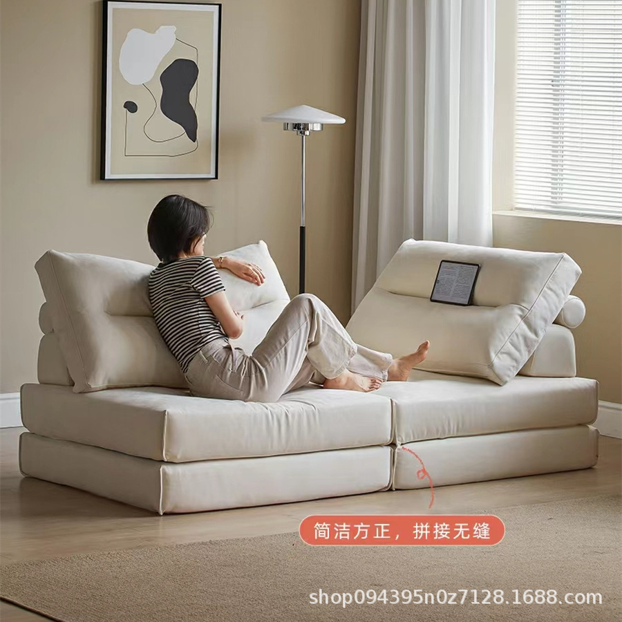 クリームスタイルのクラウドソファ取り外し可能で洗える新しいリビングルーム小さなアパートモダンなシンプルな豆腐ブロックストレートローファブリックソファ