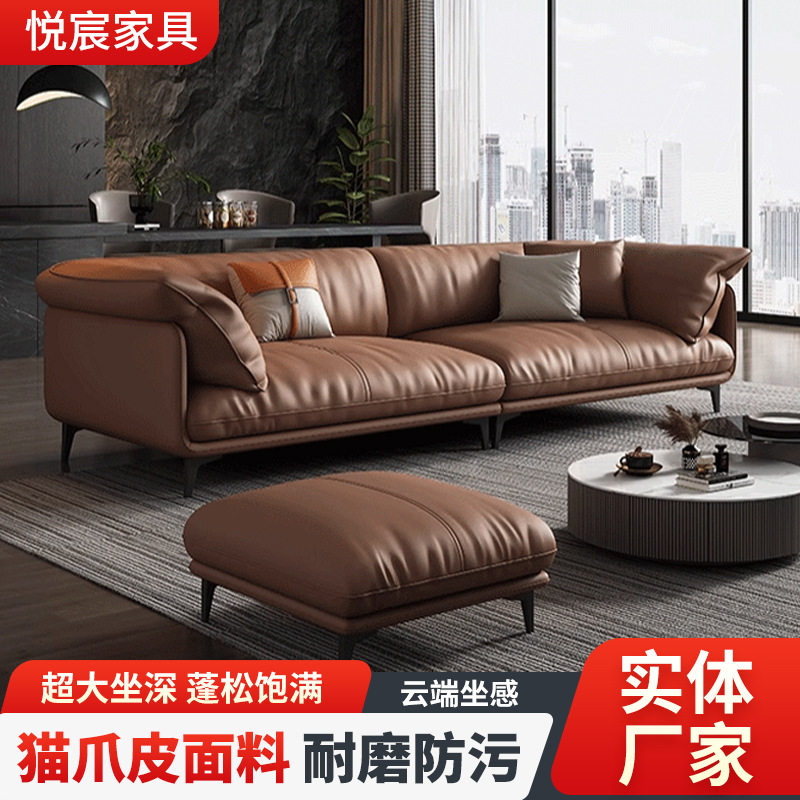 モダンでシンプルな猫の爪がけにもなる革製と綿麻生地のソファ、直線型の長椅子、冬夏兼用ソファ、リビングルーム家具