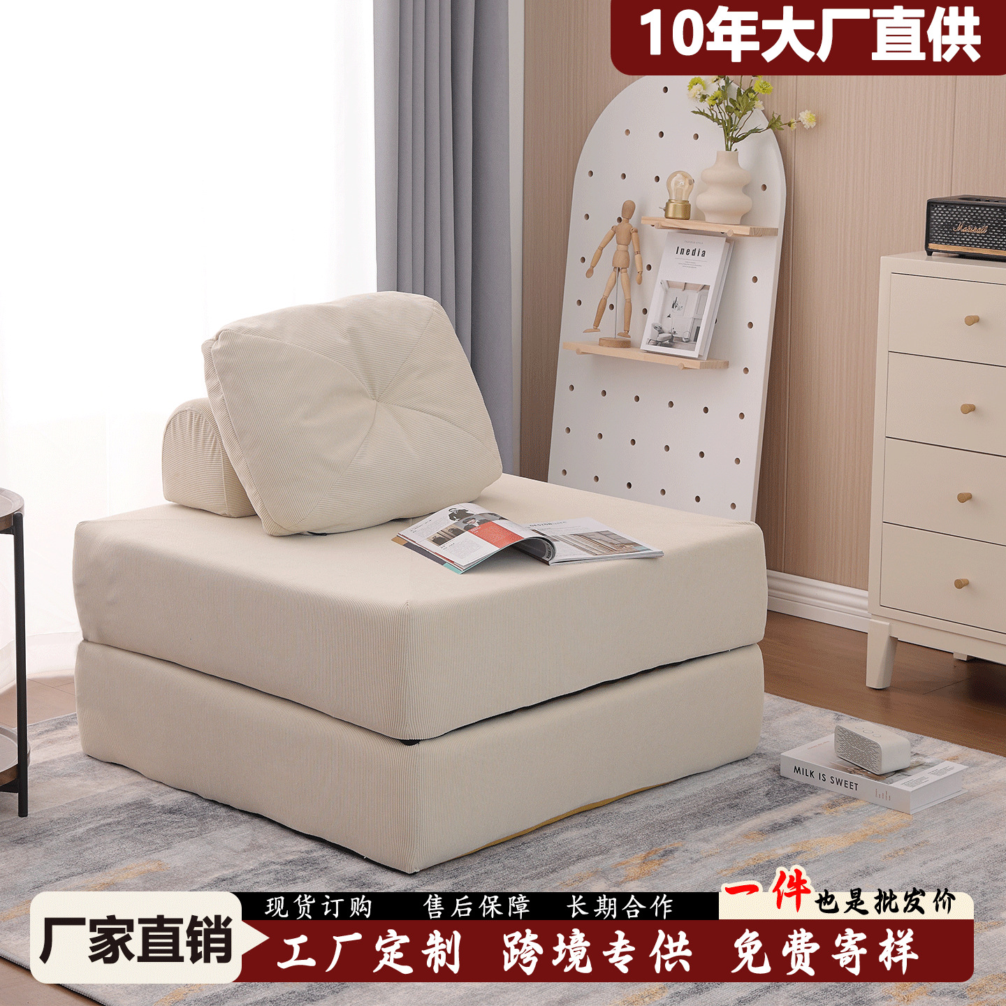 イタリア風床置き豆腐チェア、寝室用ソフトチェア、洗濯不要のレイジーソファ、ダブルアームレスレイジーチェア、シンプルなリビングルーム