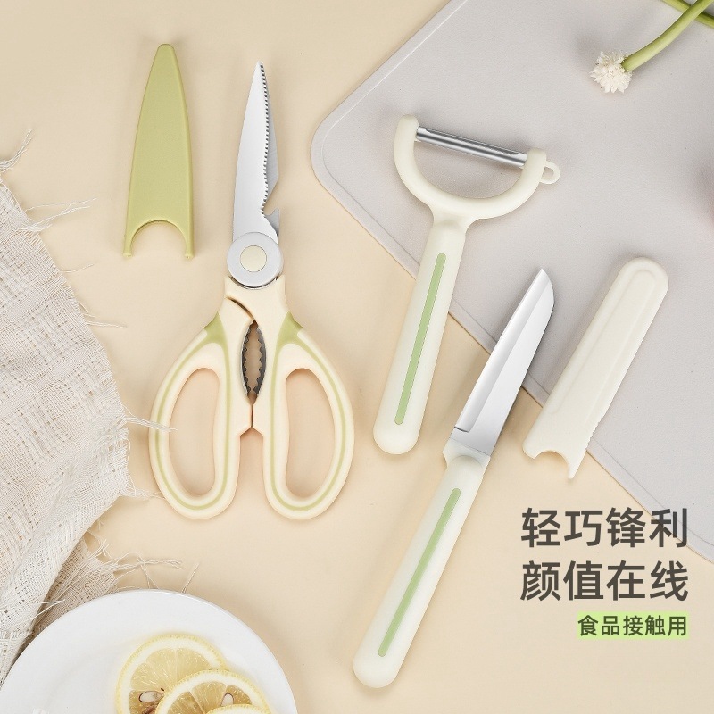 代発刃物三点セット多機能皮むき刀ハサミ家庭用果物刀寮携帯刃物セット卸売り