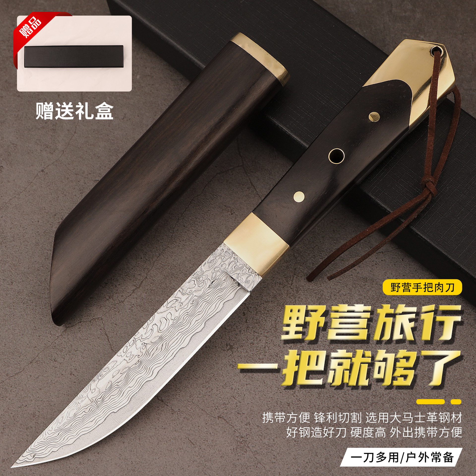 高颜値ダマスカス屋外キャンプ刀バーベキュー刀携帯多機能直刀超硬鋭利果物