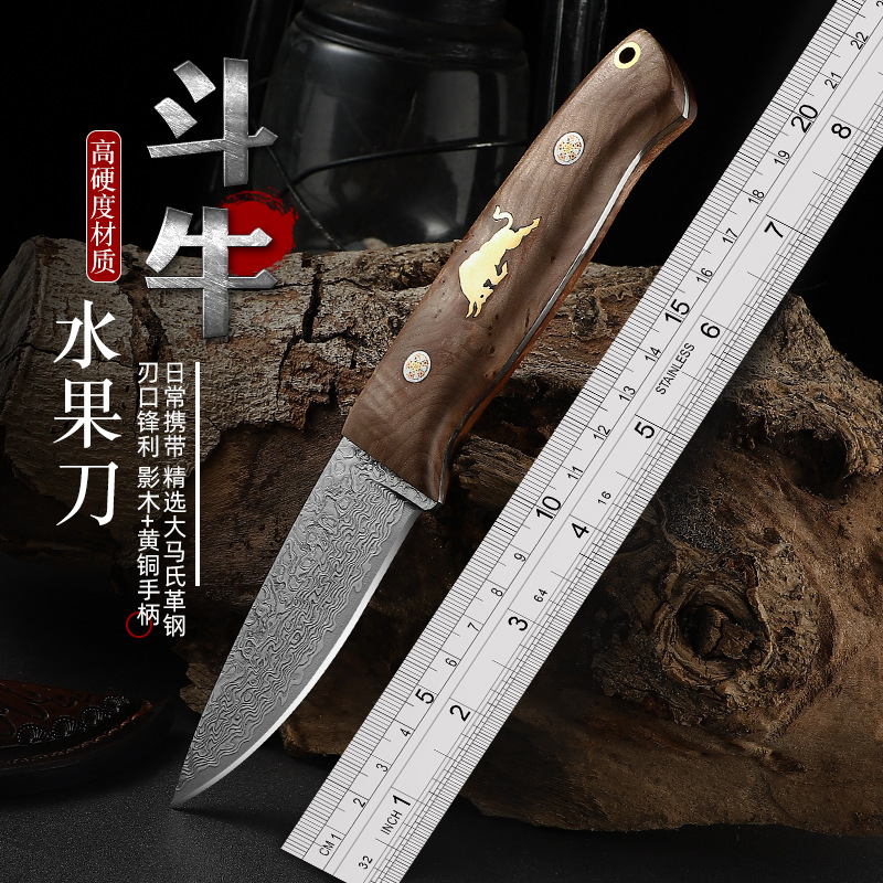 ダマスカススチールナイフ無心ダマスカススチール固化木北欧ナイフ家庭用果物ナイフアウトドアナイフ