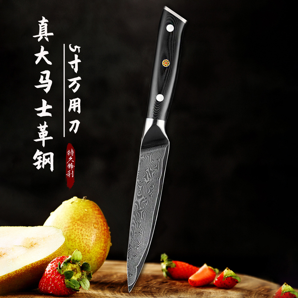 ダマスカス鋼キッチンフルーツピーラー、野菜・肉切り用ピーリングナイフ、ステンレス製ピーリングナイフセット