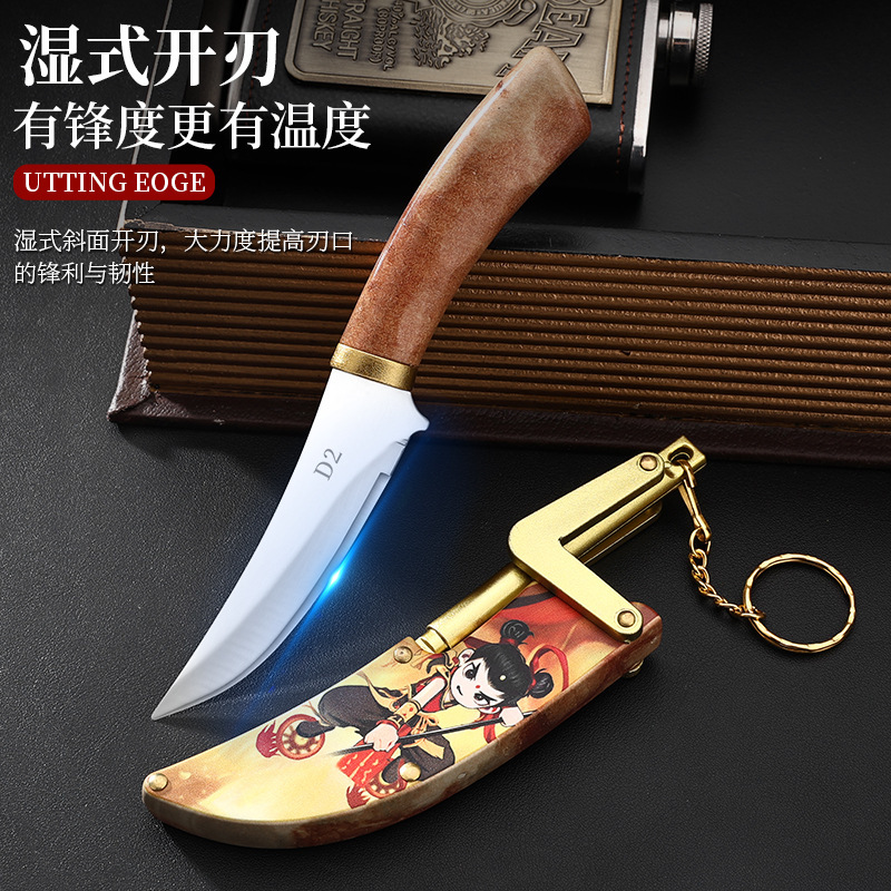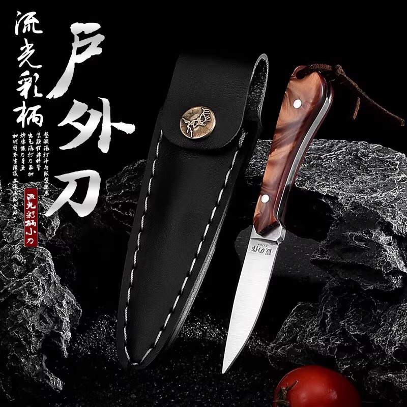ネザーフルーツナイフ プッシュ式ナイフボックス アウトドアナイフ 高硬度 モンゴル肉キャンプ 持ち運びに便利な皮ナイフ