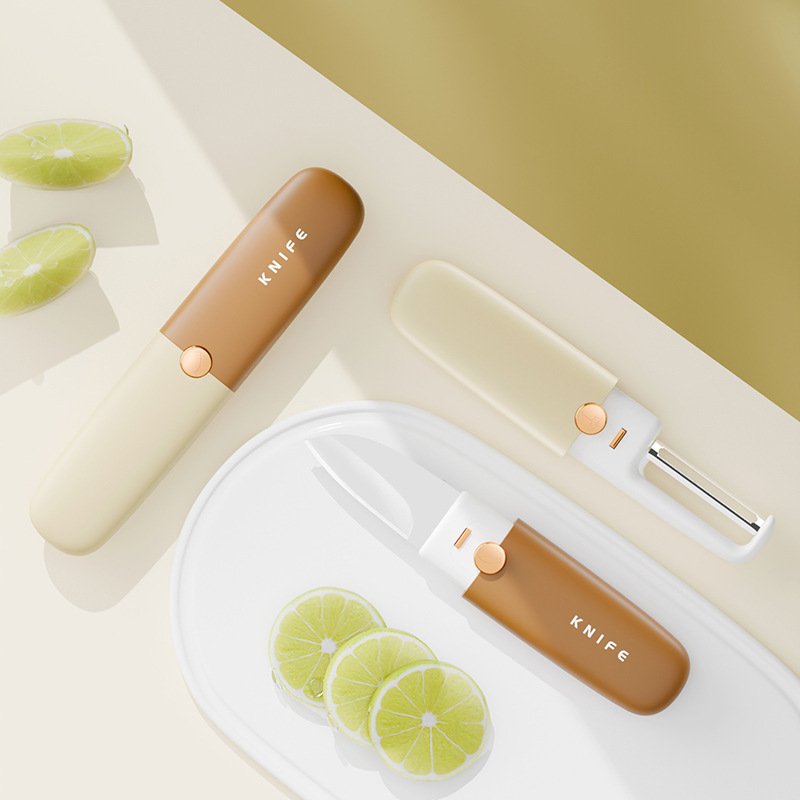 寮の学生向けの多機能フルーツナイフ、ポータブル折りたたみピーリングナイフ、双頭ツーインワン家庭用ピーリングナイフ