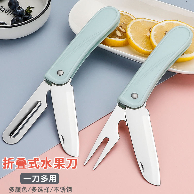 ステンレス鋼折りたたみフルーツナイフ家庭用ポータブルフルーツナイフ食品サプリメントキッチン多機能果物ナイフツーインワン